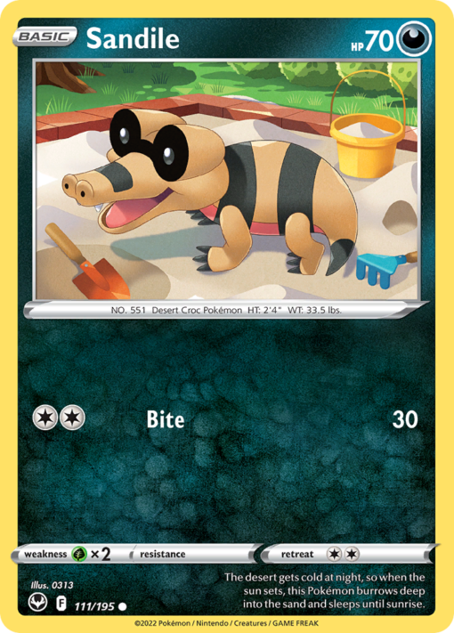 The desert gets cold at night, so when the sun sets, this Pokémon burrows deep into the sand and sleeps until sunrise.