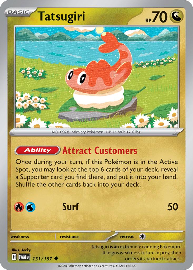 Tatsugiri is an extremely cunning Pokémon. It feigns weakness to lure in prey, then orders its partner to attack.